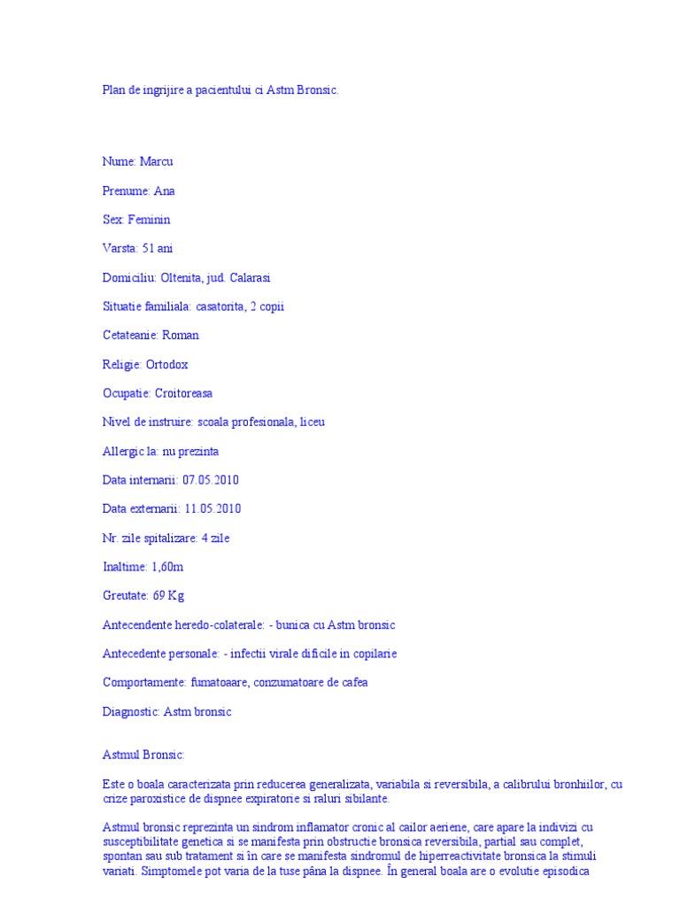 Plan De Ingrijire La Un Bolnav Cu Astm Bronsic 1a