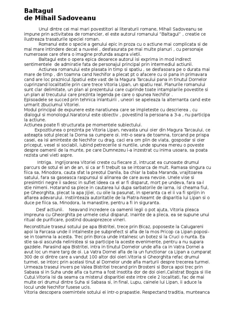 Mihail Sadoveanu Baltagul Comentariu Bac Pdf Gratuito Idalmavona Ga