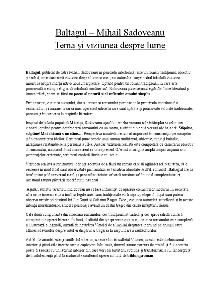 Tema Si Viziunea Despre Lume Baltagul Pdf Document