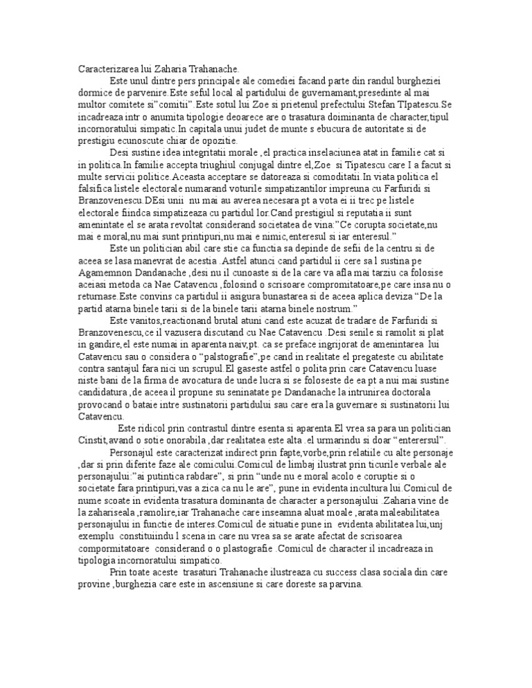 Caracterizarea Lui Zaharia Trahanache