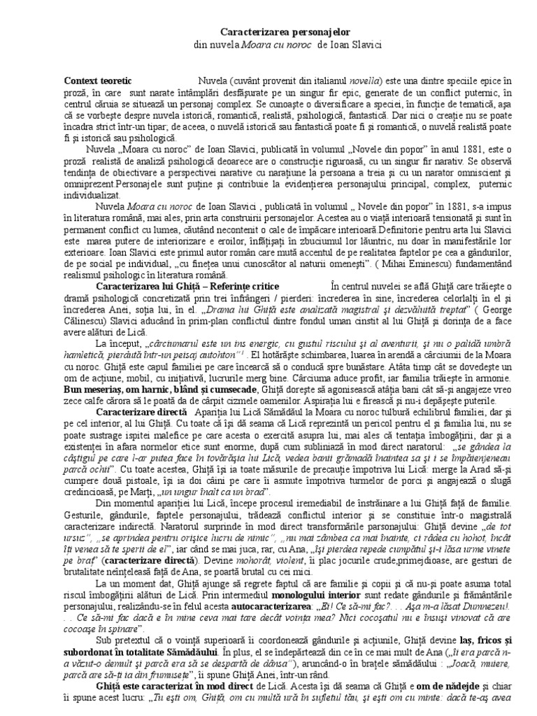 Referat Moara Cu Noroc Caracterizarea Lui Ghita Lica Si Ana 327837 Graduo