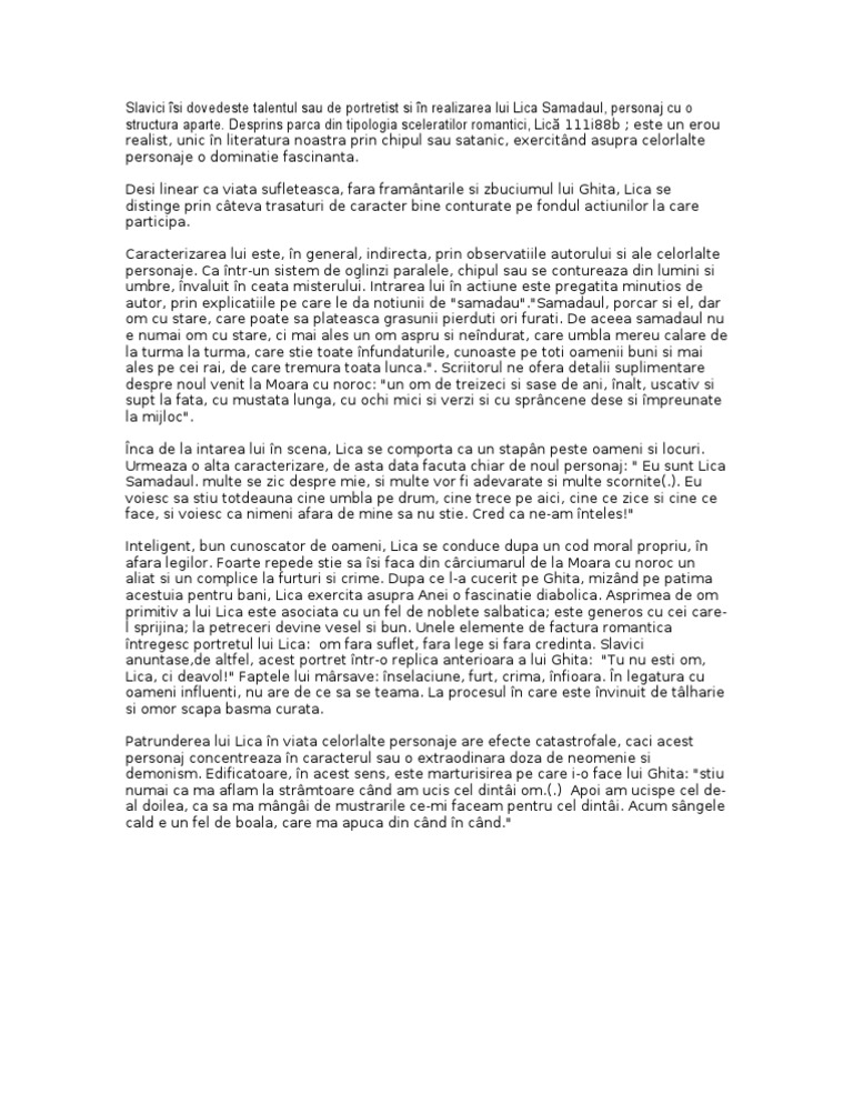 Caracterizarea Lui Lica Samadaul