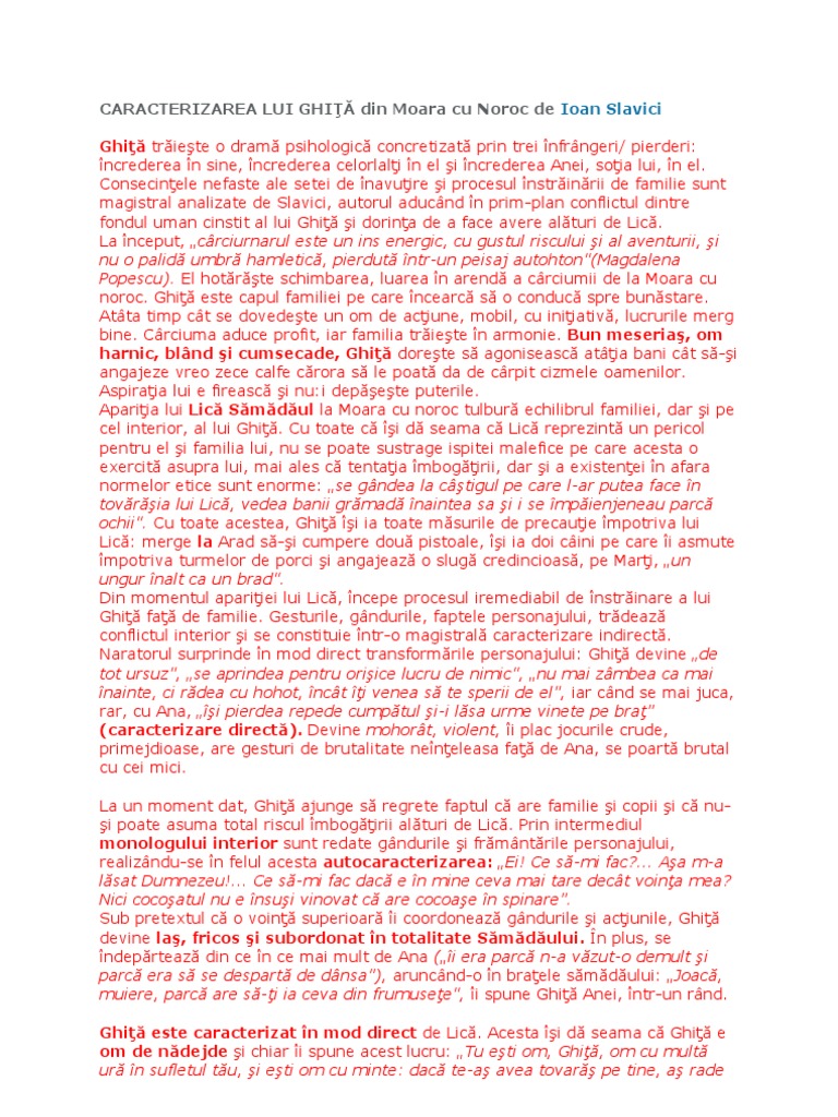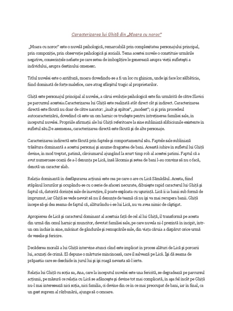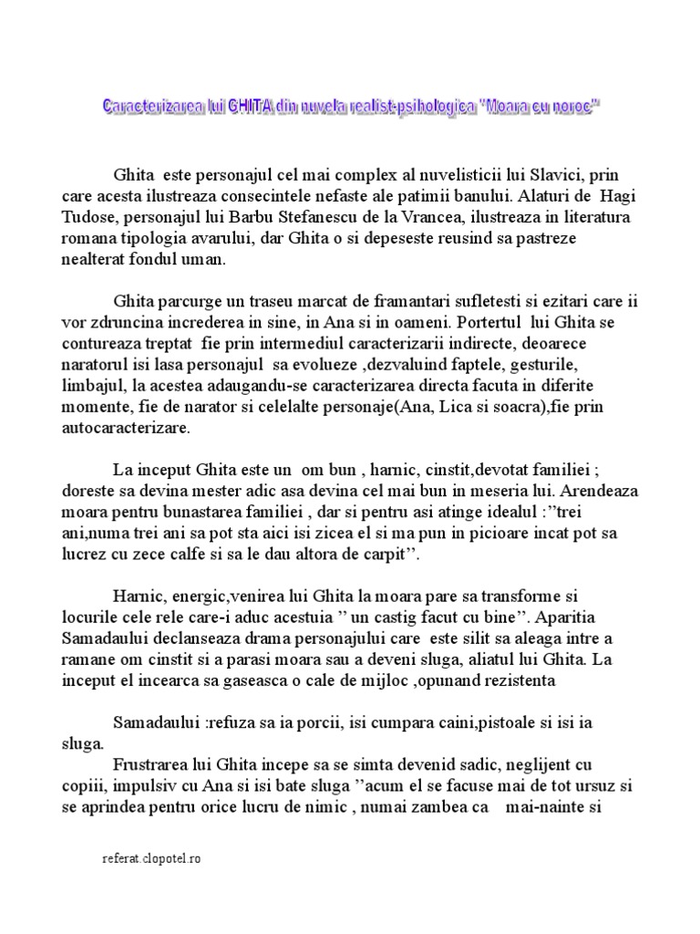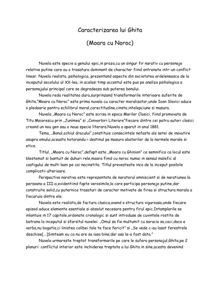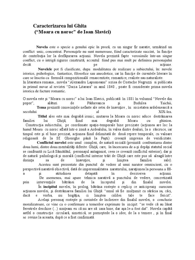 Doc Caracterizare Ghita Moara Cu Noroc De Ioan Slavici Elena Grigorescu Academia Edu