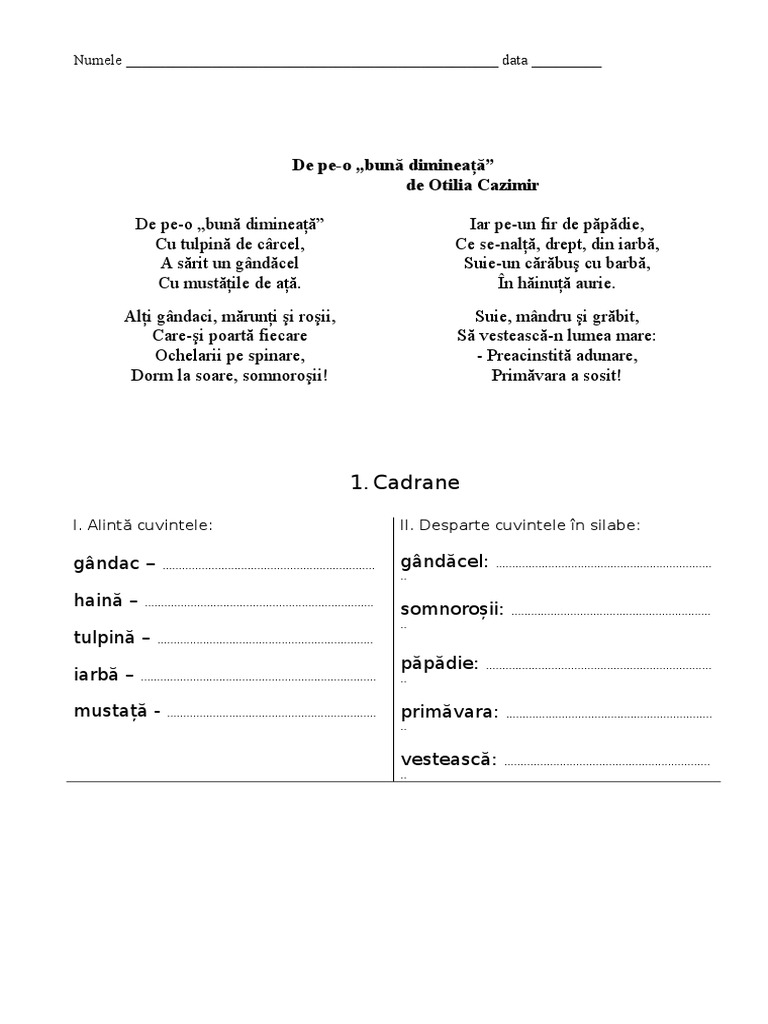 De Pe O Buna Dimineata Otilia Cazimir Nursery Rhymes Kids And Parenting Baby Printables