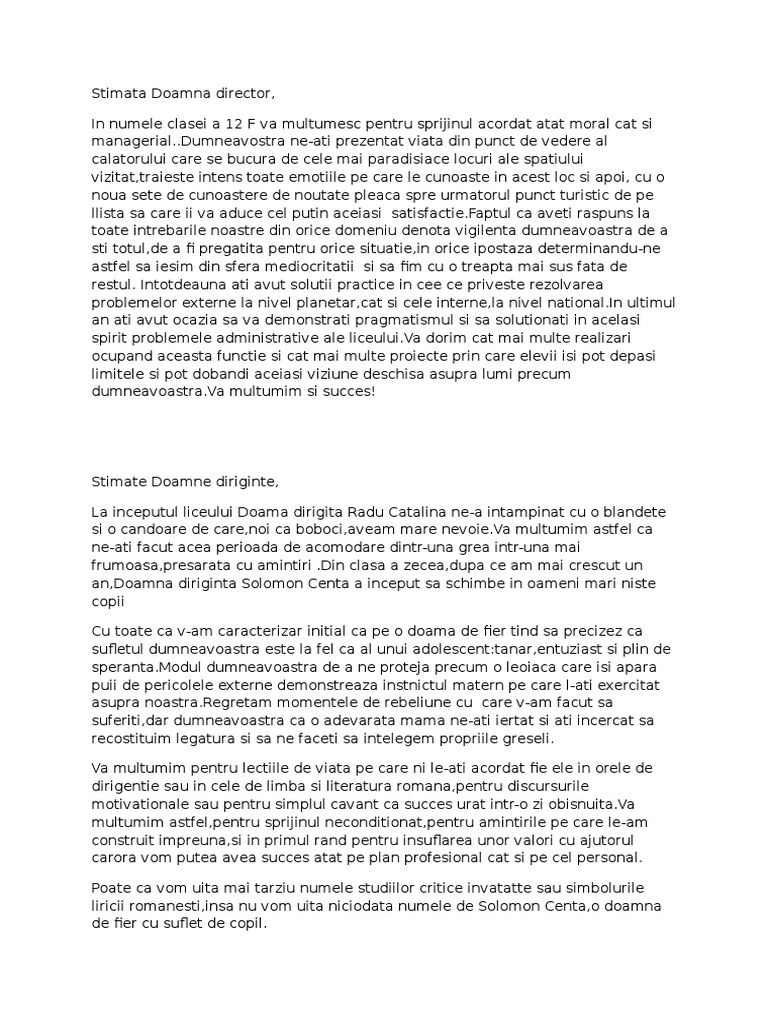 Stimată Doamnă Directoare Stimate Domnule Director Dorim Să Vă