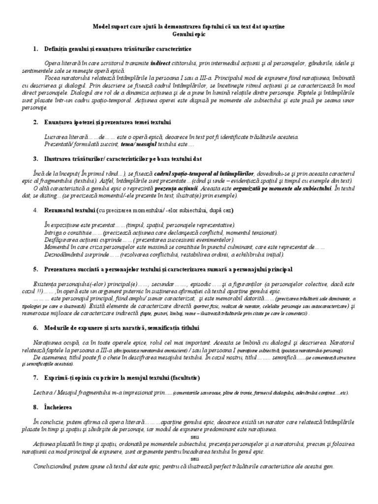 Subiecte Evaluarea Națională 2020 Subiectele La Limba Romană Compunere Despre Apartenența La Genul Epic A Unui Text și Redactarea Unui Text Narativ Scoala Xyz