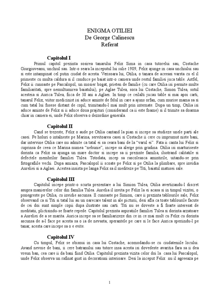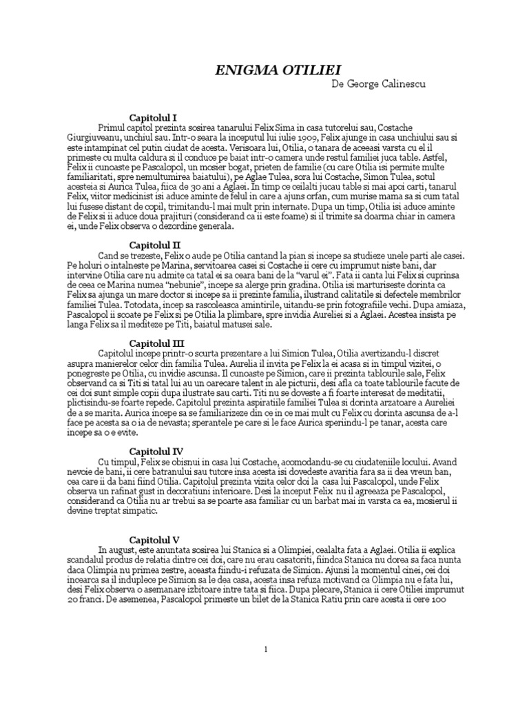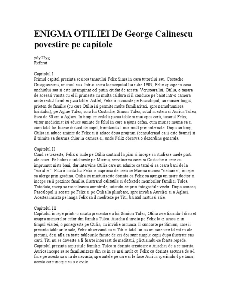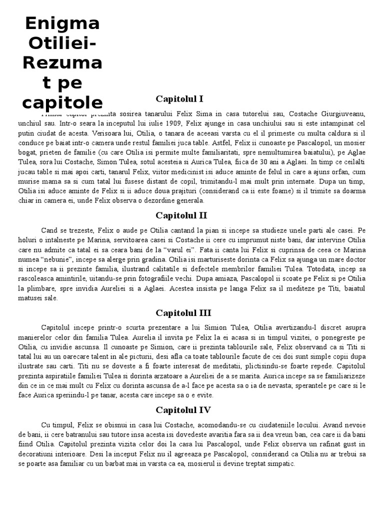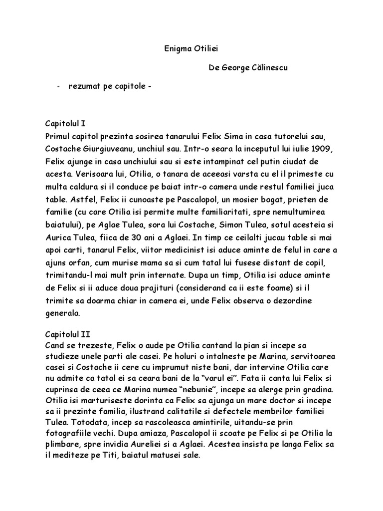 Enigma Otiliei Rezumat Pe Capitole Doc