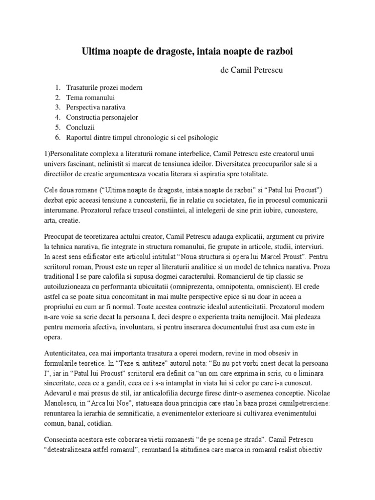 Doc Ultima Noapte De Dragoste Intaia Noapte De Razboi Camil Petrescu Popescu Andrei Academia Edu