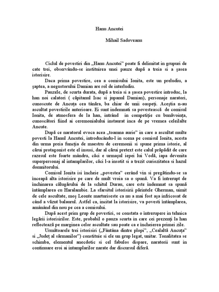 Mihail Sadoveanu Hanu Ancutei Pdf Document