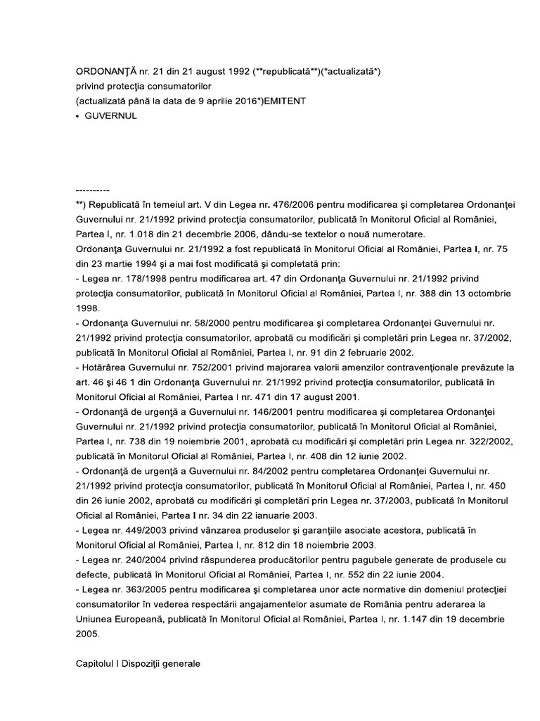 Ordonanta Guvernului Nr 21 Din 21081992 Republicata Si Actualizata La 09042016 Pdf