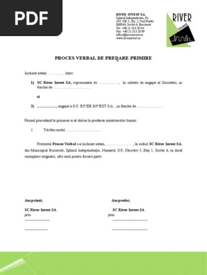 Model Proces Verbal Predare Primire Obiecte De Inventar
