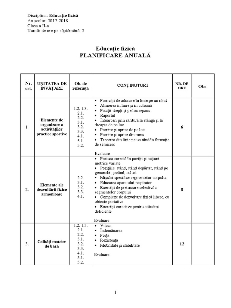 Planificare Educatie Fizica Si Sport 2018 2019 Ilioaiaadrian 10 10 2018