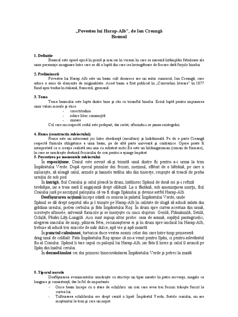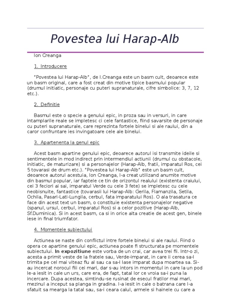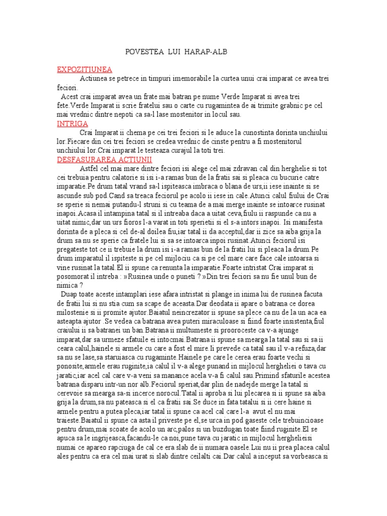 Referat Argumentare Basm Cult Harap Alb 327057 Graduo