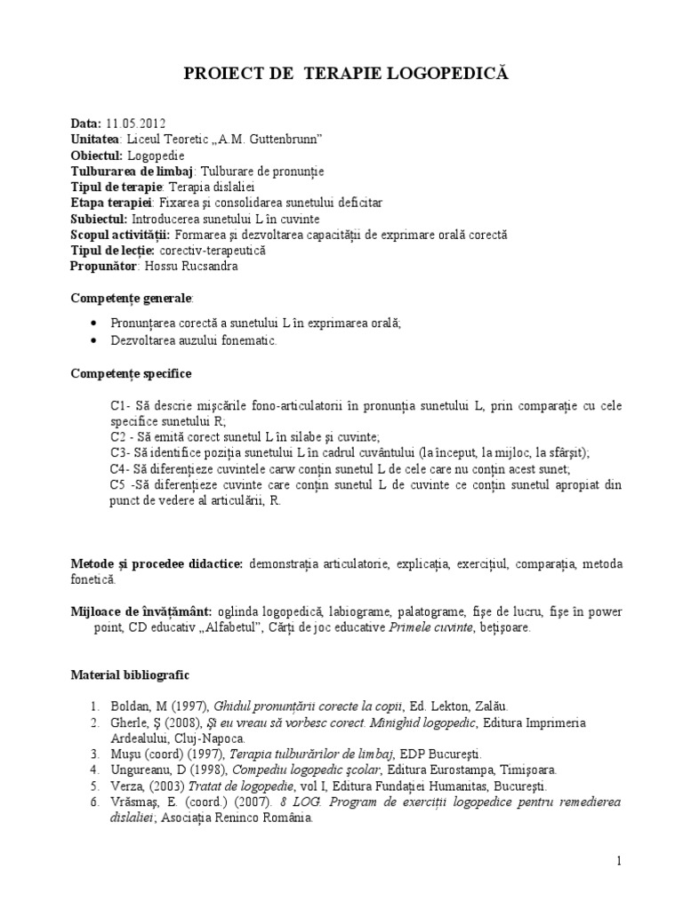 Doc Proiect De Activitate Logopedică Seby Basty Academia Edu