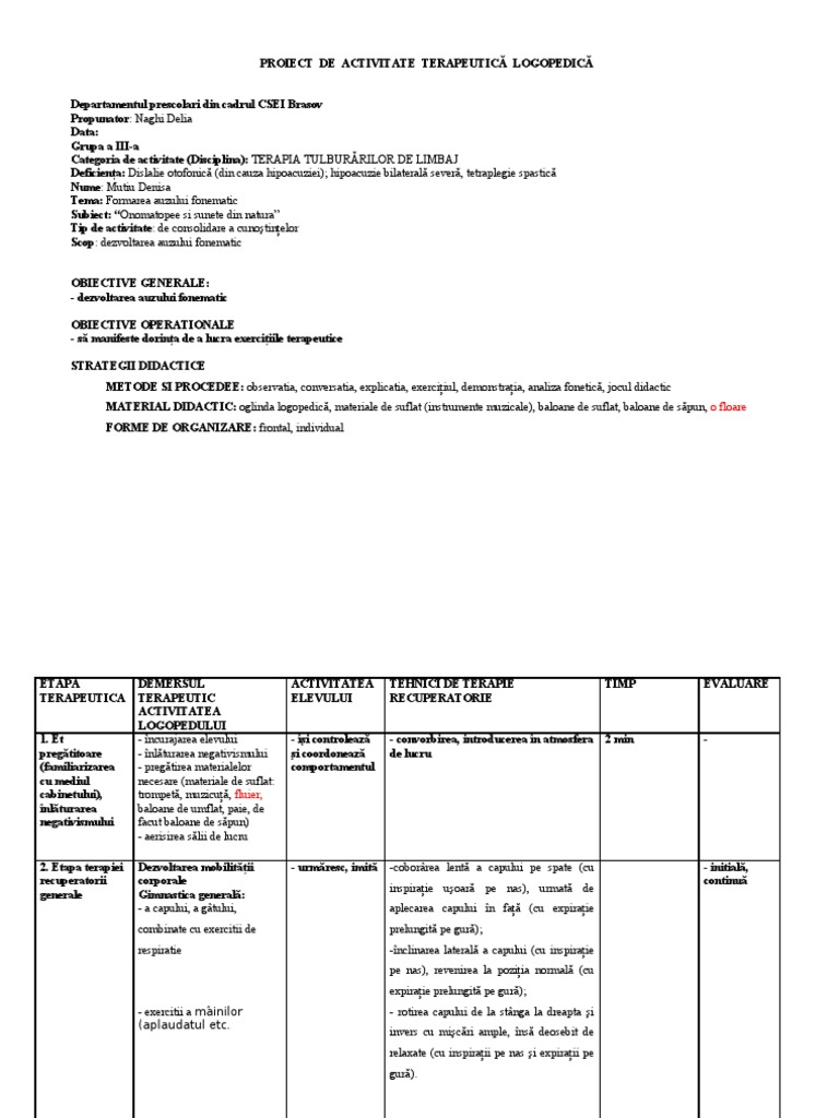 Doc Proiect De Activitate Terapeutică Logopedică Scenariu Didactic Mari Moldovan Academia Edu