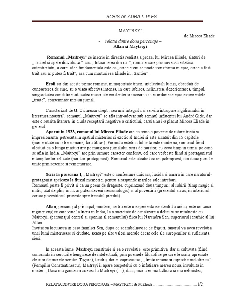 Compuneri Pentru Clasa A Zecea Maitreyi Relatia Dintre Doua Personaje Wattpad