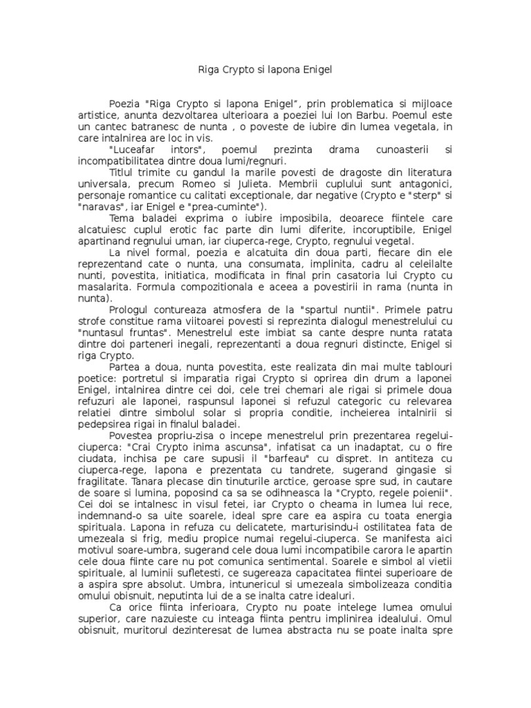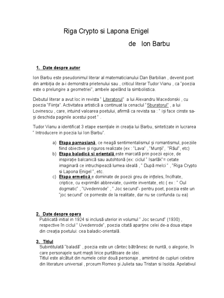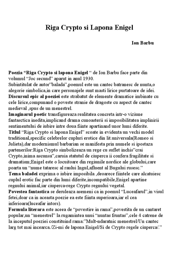 Riga Crypto Si Lapona Enigel Ion Barbu Eseu Youtube